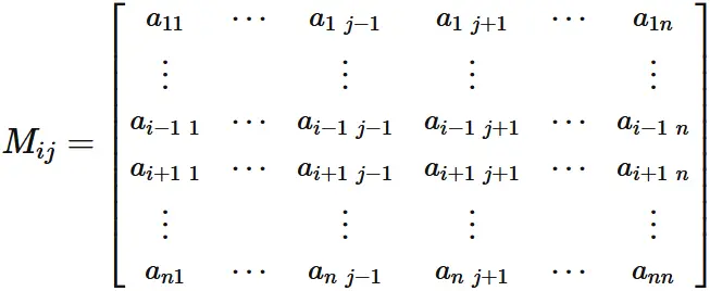 and $M_{ij}$ be the sub-matrix obtained by removing the $i$-th row and $j$-column: