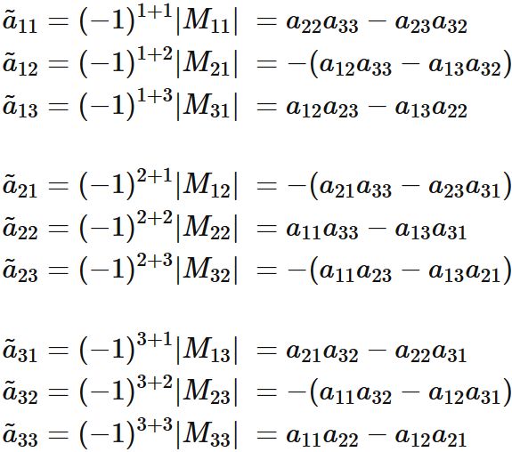 \tilde{a}_{ij} = (-1)^{i+j}|M_{ji}|