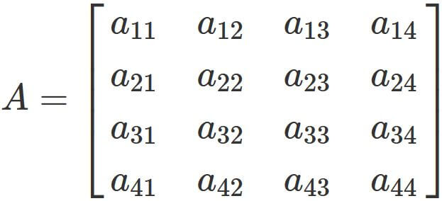 Let $a_{ij}$ be the $i$-th row and $j$-th column element of an $n \times n$ matrix $A$,
