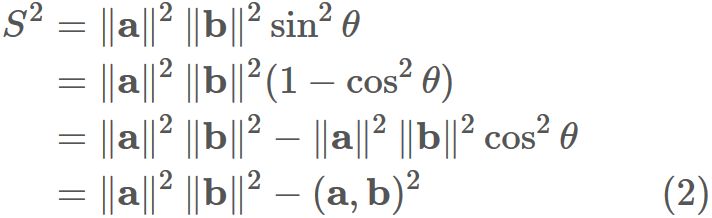 equal to the area of the parallelogram given by the two vectors, i.e.,