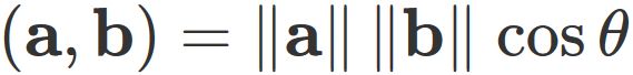 , where $\theta$ is the angle between vector $ \mathbf{a} $ and vector $ \mathbf{b} $,