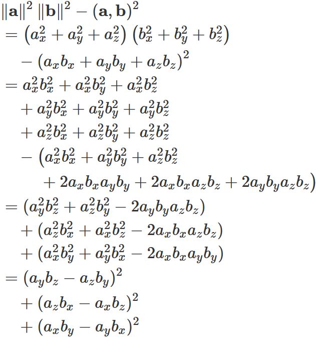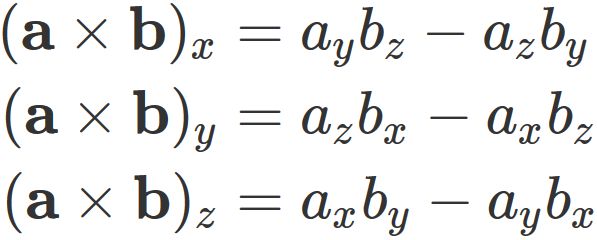 The three terms in the last line are the elements of the cross product, $\mathbf{a} \times \mathbf{b}$, i.e.,