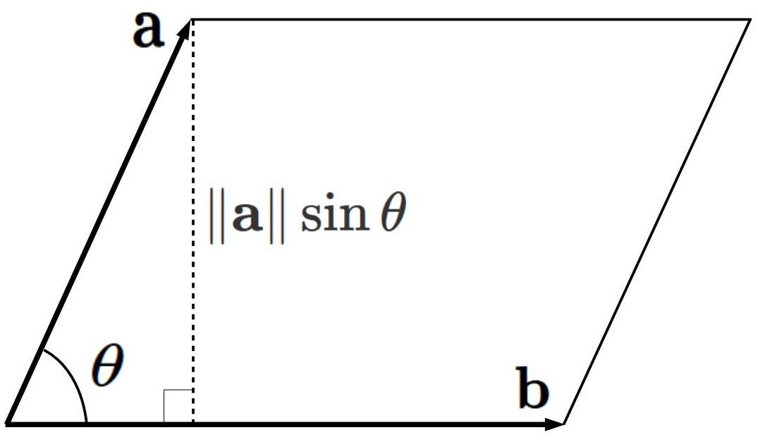 The base of this parallelogram is $\| \mathbf{b} \|$ and its height is $\| \mathbf{a} \| \sin\theta$.