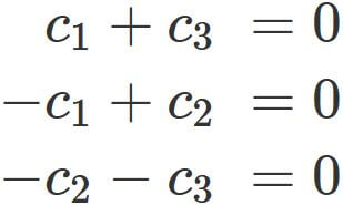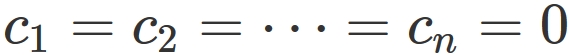 holds only when all the coeffients $c_{1}, c_{2}, \cdots, c_{n}$ are equal to zero, i.e.,