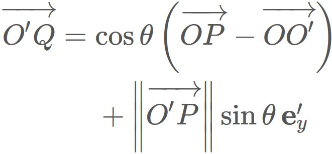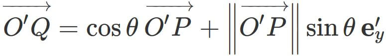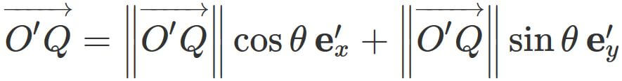 Since $\theta$ is the rotation angle between $ \overrightarrow{O'Q}$ and $\mathbf{e}'_{x}$ ,