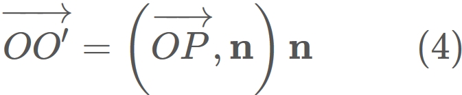 and $O'$ be the projected position of $P$ onto $\mathbf{n}$. (See figure below.)
