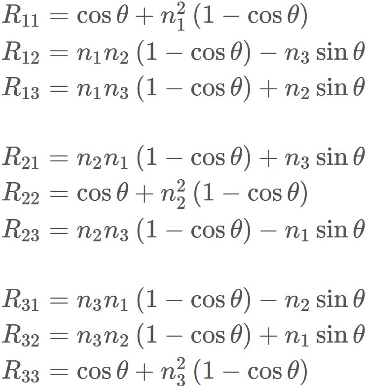 , where $\mathbf{n} = [n_1, n_2, n_3]$ is an arbitrary axis of rotation and $\theta$ is a rotation angle