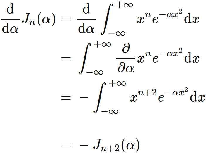 \frac{\mathrm{\partial} }{\mathrm{\partial} \alpha } \left( x^{n} e^{-\alpha x^2} \right)