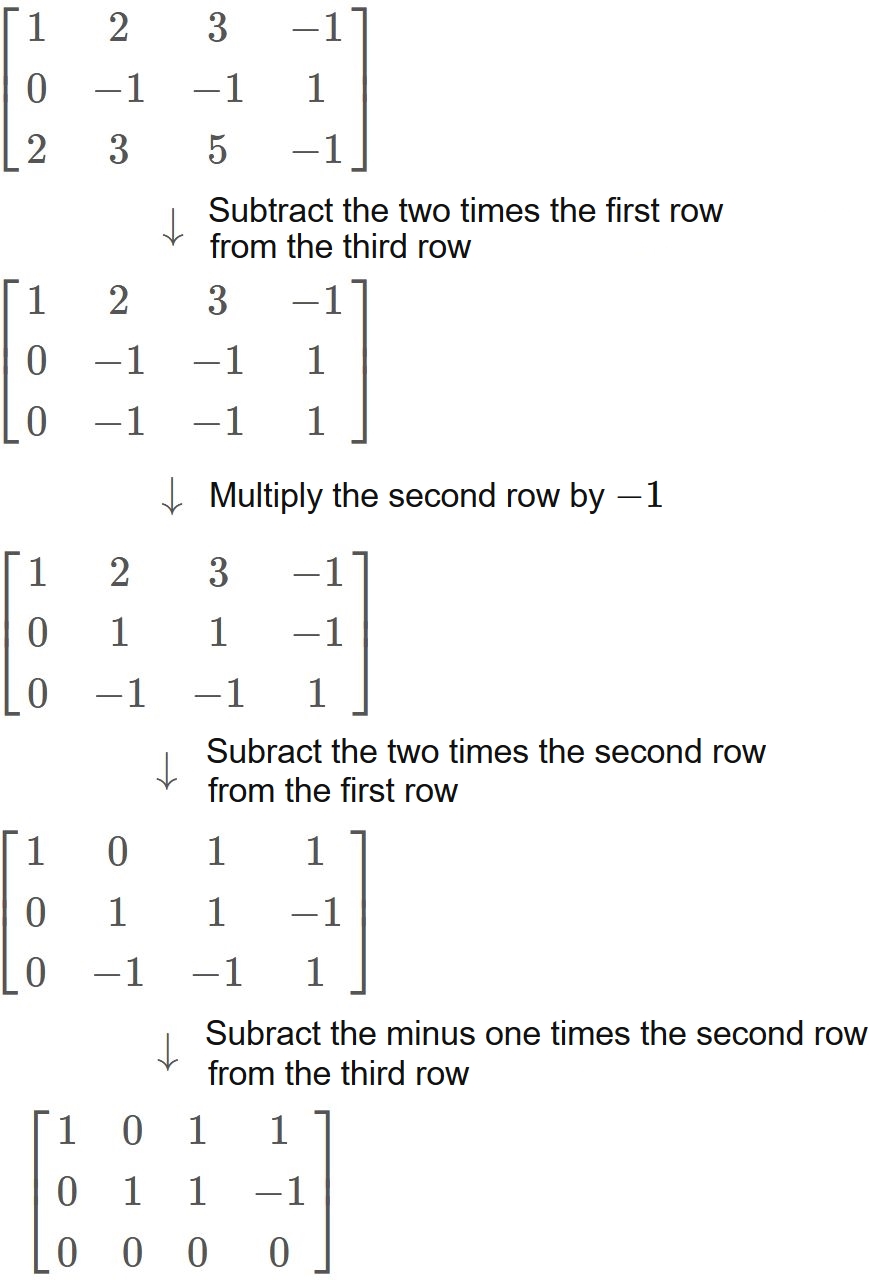 . We transform $A$ to the reduced row echelon form as follows.