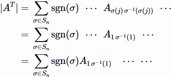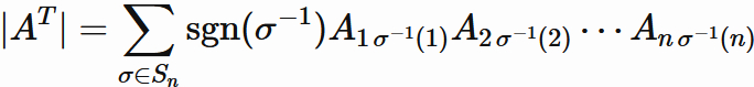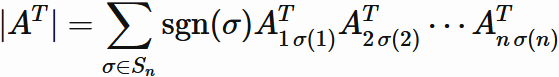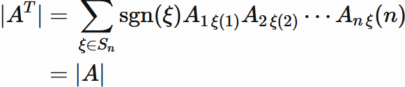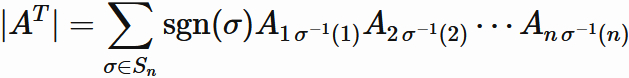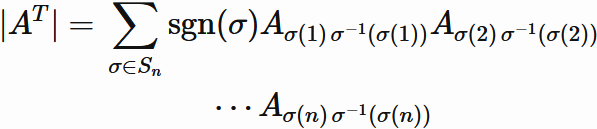 the determinant of transpose of an arbitray $n \times n$ matrix $A$