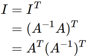This expression shows that $ (A ^ {-1}) ^ {T} $ is the inverse matrix of $ A ^ {T} $, that is,