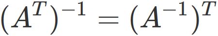 and the inverse matrix of $A^{T}$ is $(A^{-1})^{T}$, that is,
