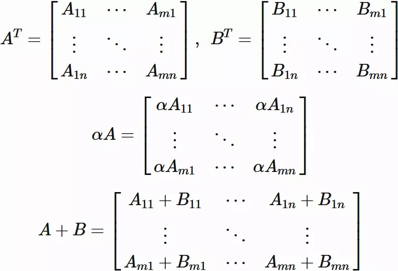 Let $A$ and $B$ be $m \times n$ matrices and alpha be a scalar.