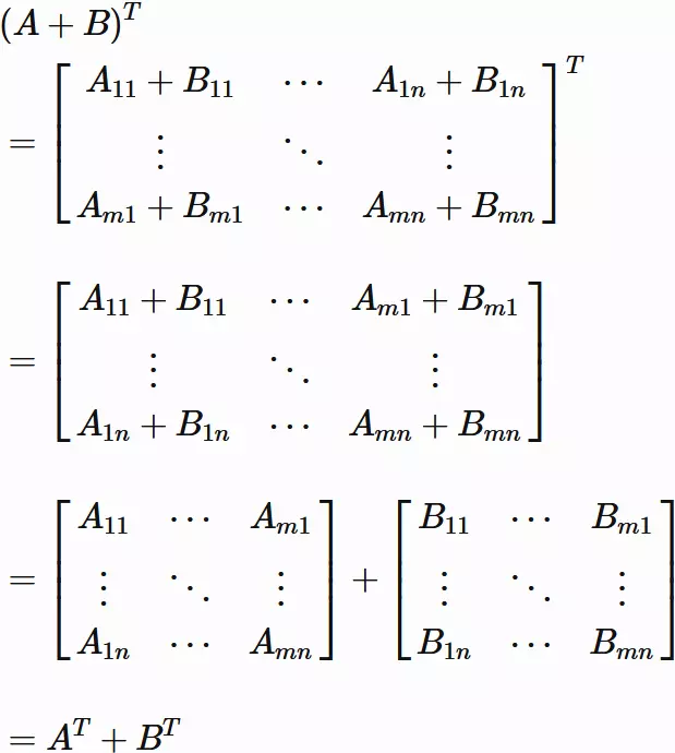 Transpose - properties and formulas -